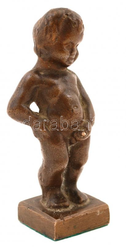 Leírás: Pisilő kisfiú, patinázott bronz szobrocska, jelzés nélkül, m: 11 cm