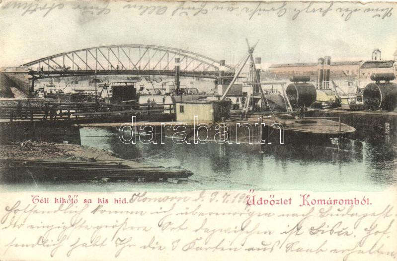 Komárom, Komárno; téli kikötő hajókkal, híd / winter harbor with ships... https://www.darabanth.com/hu/264-Gyorsarveres/264.0/Kepeslapok/Felvidek~200028/Komarom-Komarno-teli-kikoto-hajokkal-hid-winter-harbor-with-ships-bridge-EB~II1318167