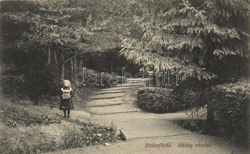 Leírás: Stoószfürdő, Sétány; kiadja Wlaszlovits Gusztáv / park