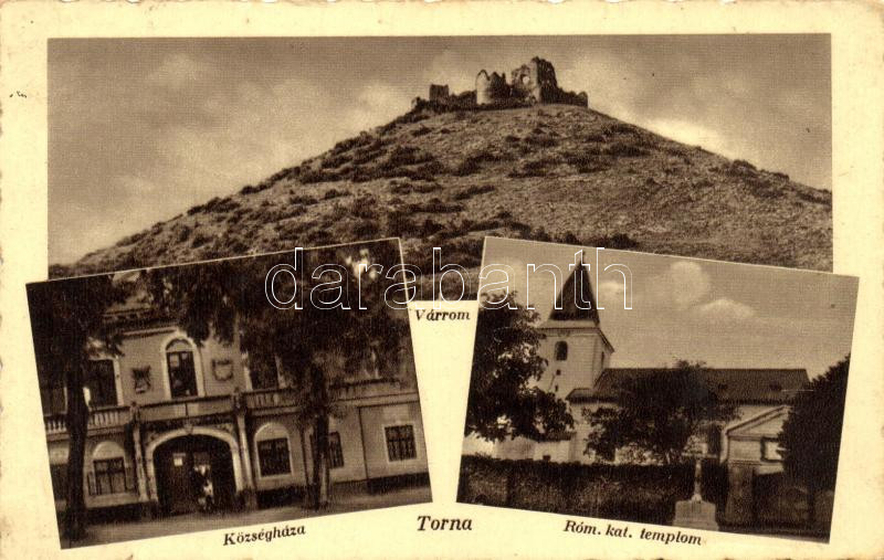 Torna, Turna nad Bodvou; várrom, községháza, Római Katolikus templom, kiadja Özv. Glancz Lipótné papírkereskedő / castle ruins, town hall, catholic church