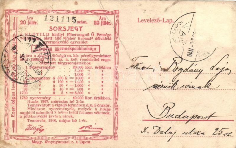 Abbazia, Madonna szobor, csónakok, hátoldalon sorsjegy Szegény gyermekpoliklinika javára / Madonna statue, boats, charity lottery ticket on the backside (fa)