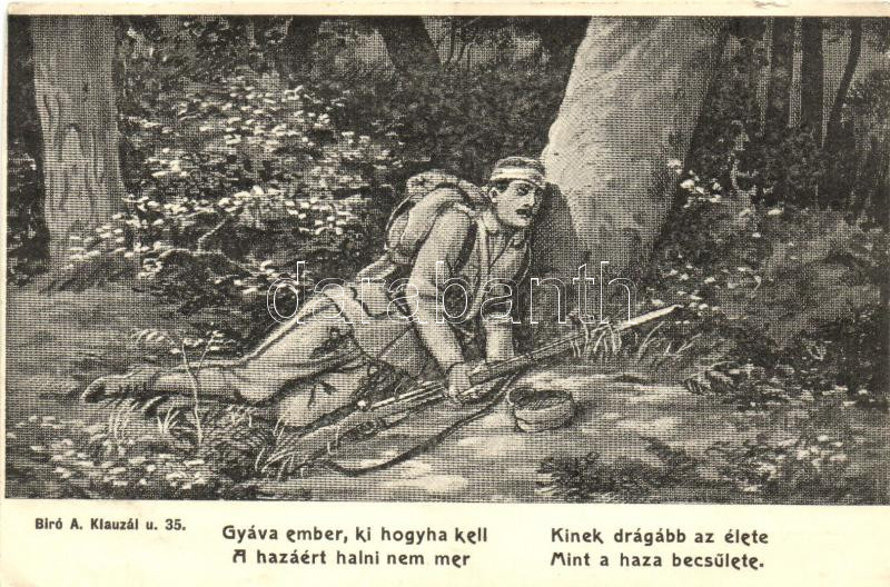 'Gyáva ember, ki hogyha kell, A hazáért halni nem mer', sérült magyar katona, PetÅ‘fi vers részlet / Injured Hungarian soldier, with an excerpt of PetÅ‘fi's poem, s: BÃró A. (vágott / cut)