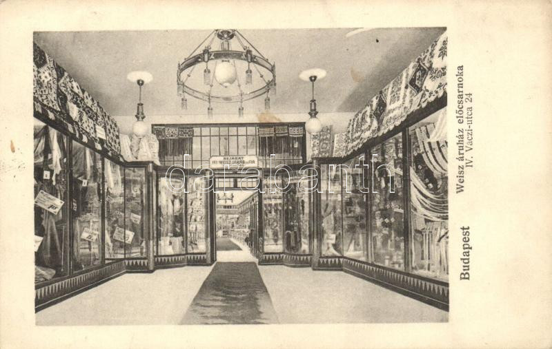 Budapest V. a Weisz áruház előcsarnoka, Váci utca 24., kiadja Bíró Pál... https://www.darabanth.com/hu/264-Gyorsarveres/264.0/Kepeslapok/Magyarorszag~200025/Budapest-V-a-Weisz-aruhaz-elocsarnoka-Vaci-utca-24-kiadja-Biro-Pal-fenykepesz-EK~II1317959