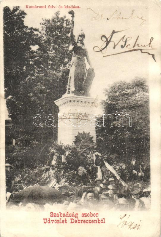 Debrecen, Szabadság szobor; Komáromi felvétele és kiadása (ázott / wet... https://www.darabanth.com/hu/264-Gyorsarveres/264.0/Kepeslapok/Magyarorszag~200025/Debrecen-Szabadsag-szobor-Komaromi-felvetele-es-kiadasa-azott-wet-damage~II1318914
