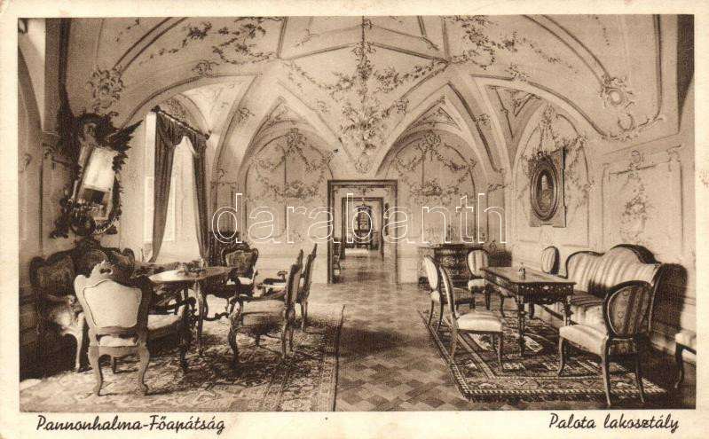 Pannonhalma-Főapátság; Palota lakosztály, belső (EK) https://www.darabanth.com/hu/264-Gyorsarveres/264.0/Kepeslapok/Magyarorszag~200025/Pannonhalma-Foapatsag-Palota-lakosztaly-belso-EK~II1320871
