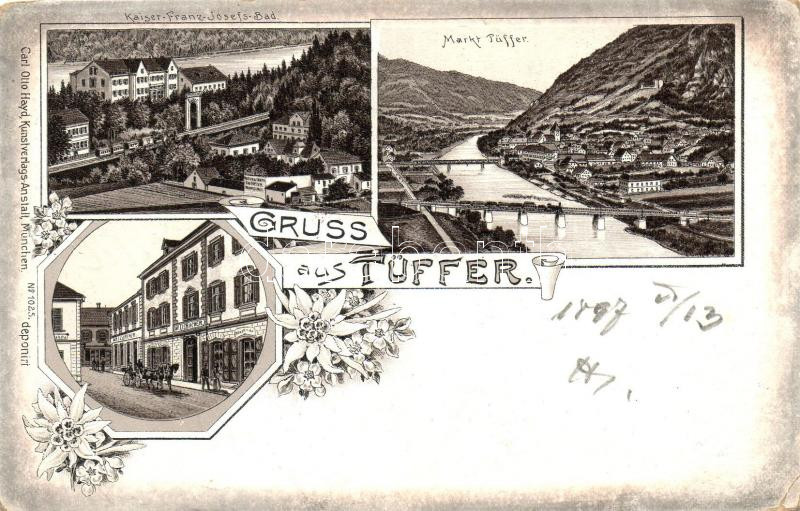 Leírás: 1897 Lasko, Tüffer; Kaiser Franz Josefs Bad / spa, shop of Eisbacher, Carl Otto Hayd Kunstverlag-Anstalt No. 1025. floral litho (EK)