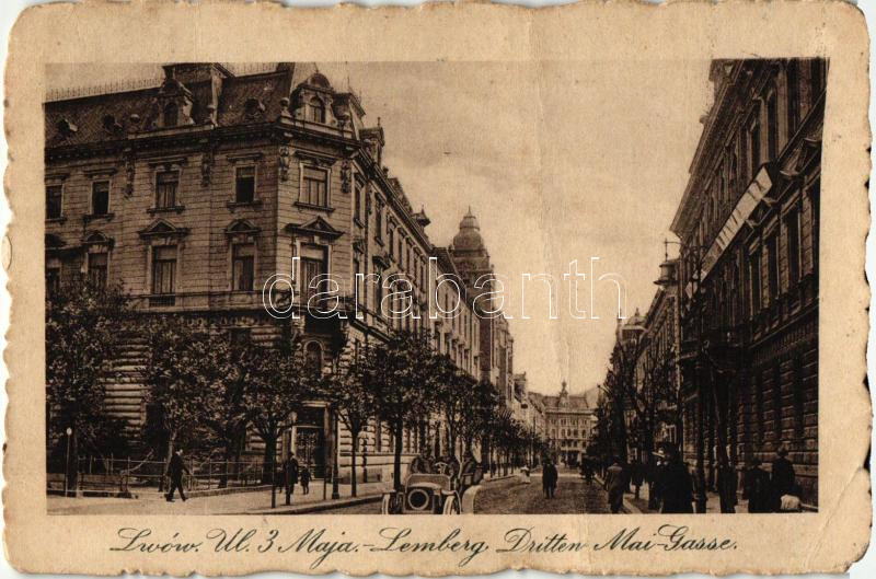 Leírás: Lviv, Lwów, Lemberg; Ul. 3 Maja / street, automobile (fa)