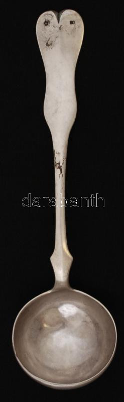 Leírás: Ezüst (Ag.) merőkanál, monogrammal,jelzett, mesterjeggyel, apró horpadással, h:22 cm, nettó:117 g