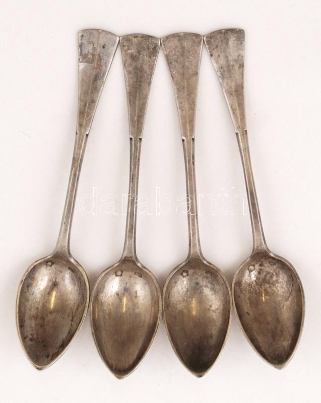 Ezüst (Ag.) mokkáskanál készlet (4 db), jelzett, mesterjeggyel, h: 11 ... https://www.darabanth.com/hu/264-Gyorsarveres/264.0/Nemesfem-Disztargyak-Orak-es-Ekszerek/Nemesfem-Disztargyak-Orak-es-Ekszerek~41/Ezust-Ag-mokkaskanal-keszlet-4-db-jelzett-mesterjeggyel-h-11-cm-netto-67-g~II1318699