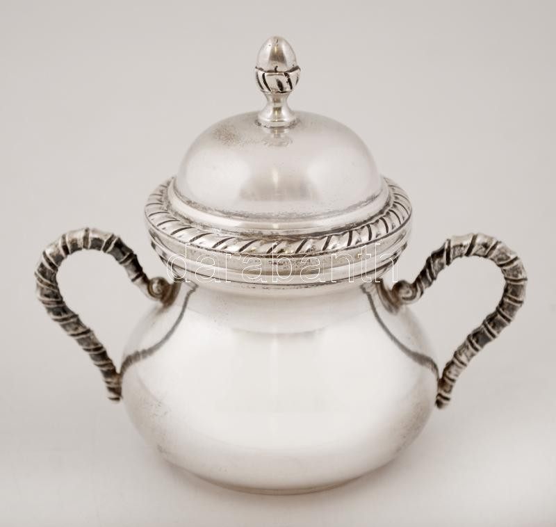 Ezüst fedeles cukortartó, Ag., nettó: 119,7gr., jelzett, 9x7cm/ Silver... https://www.darabanth.com/hu/264-Gyorsarveres/264.0/Nemesfem-Disztargyak-Orak-es-Ekszerek/Nemesfem-Disztargyak-Orak-es-Ekszerek~41/Ezust-fedeles-cukortarto-Ag-netto-119-7gr-jelzett-9x7cm-Silver-sugar-bowl-with-lid-Ag-n~II1315207