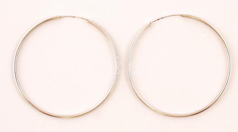 Leírás: Ezüst karika-fülbevaló, Ag., nettó: 10,4gr., jelzett, d:7cm /Silver hoop earrings, Ag, net. 10,4gr, marked, d:7cm