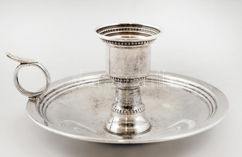 Leírás: Ezüst kézi gyertyatartó, Ag., nettó: 60gr., jelzett, 5x10cm/Silver Candlestick, Ag, net. 60gr, marked, 5x10cm
