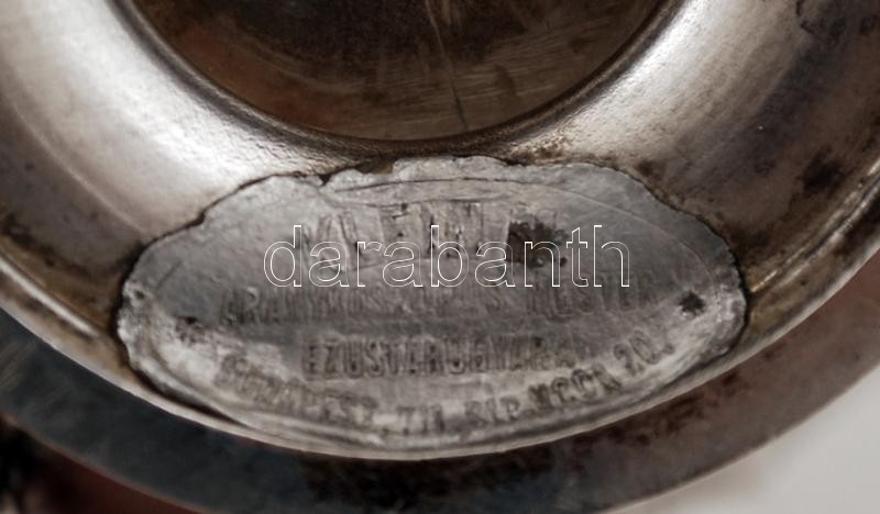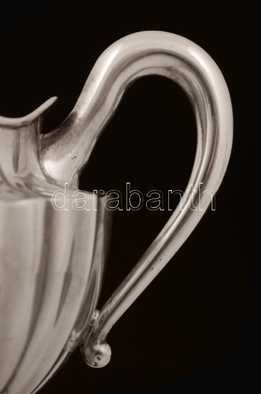 Ezüst trébelt kiöntő, Ag., nettó: 205gr., Klein Mózes., Budapest, mesterjeggyel ill., eredeti matricával, cca 1920, 10cm / Chased silver spout, Ag, net. 205gr, Moses Klein, Budapest, ticket master or original sticker, circa 1920, 10cm