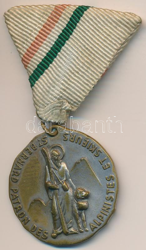 Franciaország DN "Szt. Bernát, az alpinisták és sízők védőszentje" ezüstözött Br érem nem eredeti szalagon (34mm) T:2-