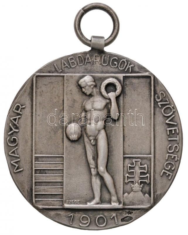 Szege Sándor (1883-1945) 1924. "Magyar Labdarúgók Szövetsége 1901 / Legjobb magyar csapat 1923-1924" jelzett Ag díjérem füllel, "S.G.A. (Scheid Ezüstáru- és Éremgyár)" gyártói jelzéssel (16,67g/0.800/35mm) T:2