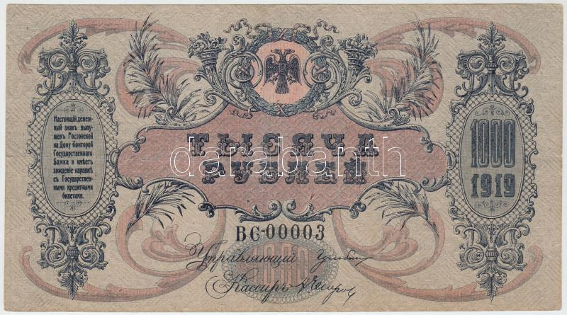 Russian Civil War / South Russia / Army of Denikin and Wrangel 1919. 1000 Rubles C:F