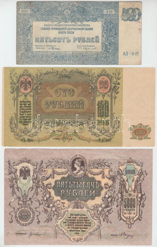 Orosz Polgárháború / Dél-Oroszország / Gyenyikin és Vrangel Hadserege 1919. 100R + 5000R vágott + 1920. 500R T:II,III