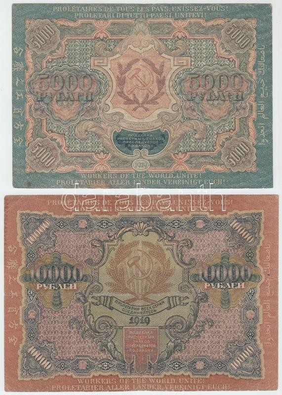 Russian Socialist Federated Soviet Republic 1919. 5000 Rubles + 10.000 Rubles C:F,VG