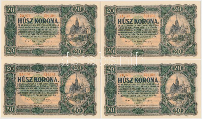 1920. 20K (7x) sorszámkövetők T:I,I- https://www.darabanth.com/hu/264-Gyorsarveres/264.0/Numizmatika/Magyar-bankjegyek~300006/1920-20K-7x-sorszamkovetok-TI-I-~II1318811