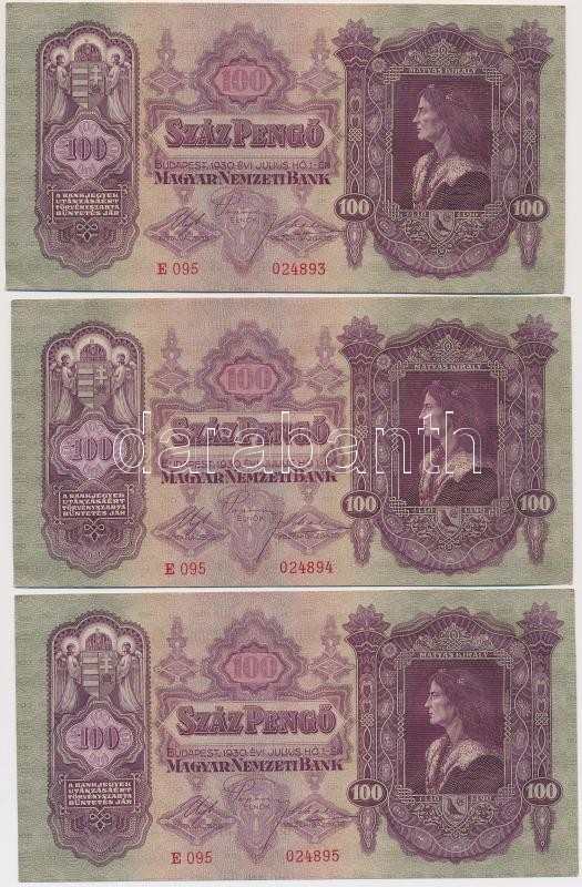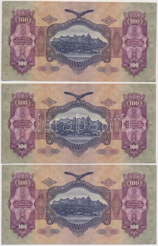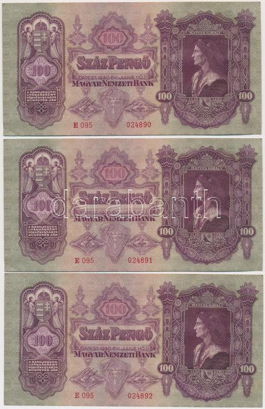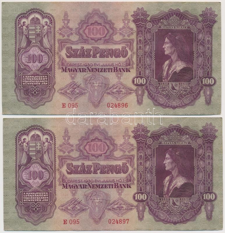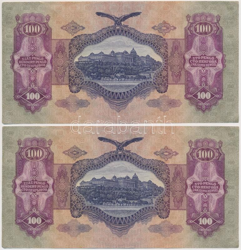 1930. 100P (8x) sorszámkövetők T:I,I- https://www.darabanth.com/hu/264-Gyorsarveres/264.0/Numizmatika/Magyar-bankjegyek~300006/1930-100P-8x-sorszamkovetok-TI-I-~II1319327