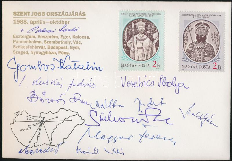 1988 A Szent Jobb országjárásának emlékborítékja, rajta többek között ... https://www.darabanth.com/hu/265-Gyorsarveres/265.0/Festmeny-mutargy-papirregiseg-egyeb/Alairas~18/1988-A-Szent-Jobb-orszagjarasanak-emlekboritekja-rajta-tobbek-kozott-Paskai-Laszlo-herc~II1330352