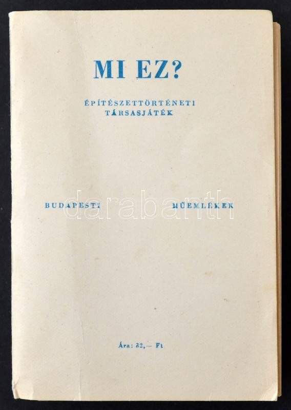 1964 Sz. Kovács Irén: Mi ez? Építészettörténeti Társasjáték. Budapesti... https://www.darabanth.com/hu/265-Gyorsarveres/265.0/Festmeny-mutargy-papirregiseg-egyeb/Bolhapiac~12/1964-Sz-Kovacs-Iren-Mi-ez-Epiteszettorteneti-Tarsasjatek-Budapesti-muemlekek-Hiany~II1327308