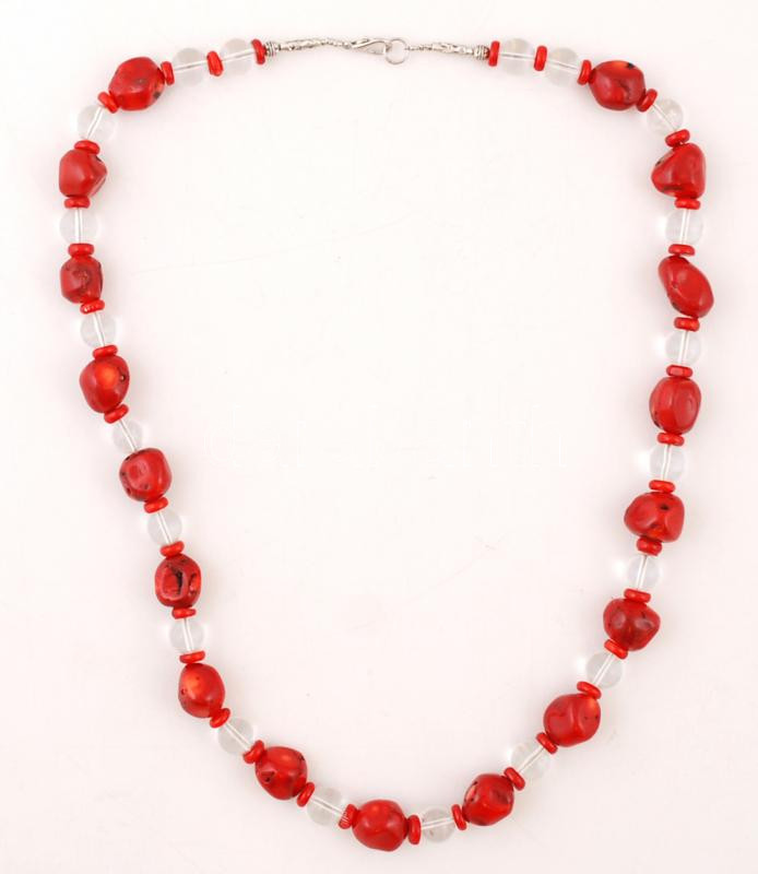 Leírás: Dekoratív női nyaklánc korall gyöngyökkel, újszerű állapotban, 80cm