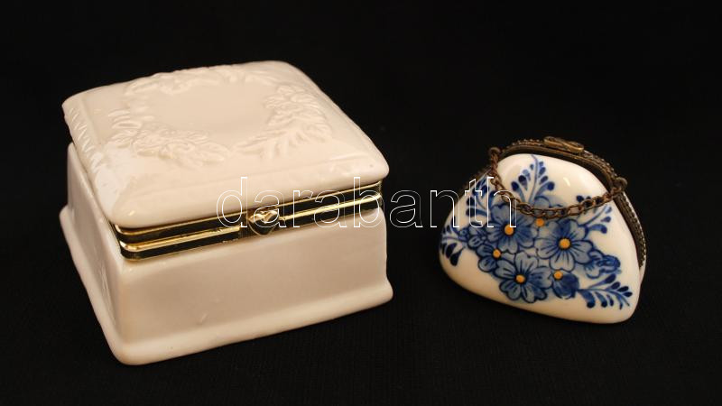 Leírás: Jelzés nélküli porcelán ékszertartók, 2db, 7x7x4cm, 4x5cm