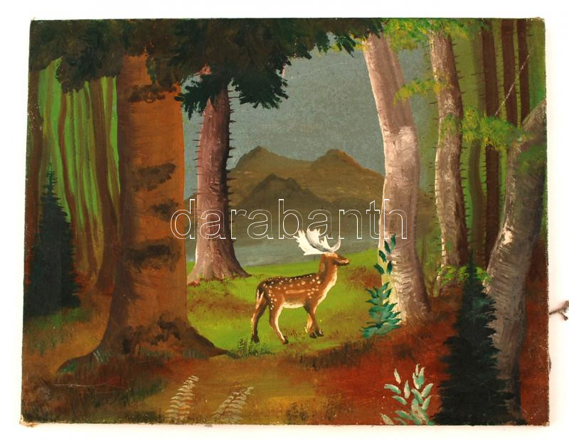 Jelzés nélkül: Szarvas. Olaj, vászon, 32×41 cm https://www.darabanth.com/hu/265-Gyorsarveres/265.0/Festmeny-mutargy-papirregiseg-egyeb/Festmenyek-es-grafikak~1/Jelzes-nelkul-Szarvas-Olaj-vaszon-32C39741-cm~II1329304