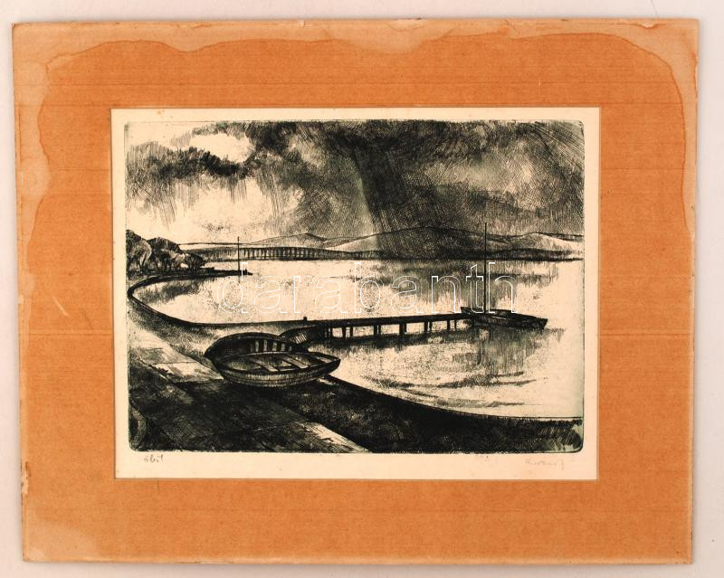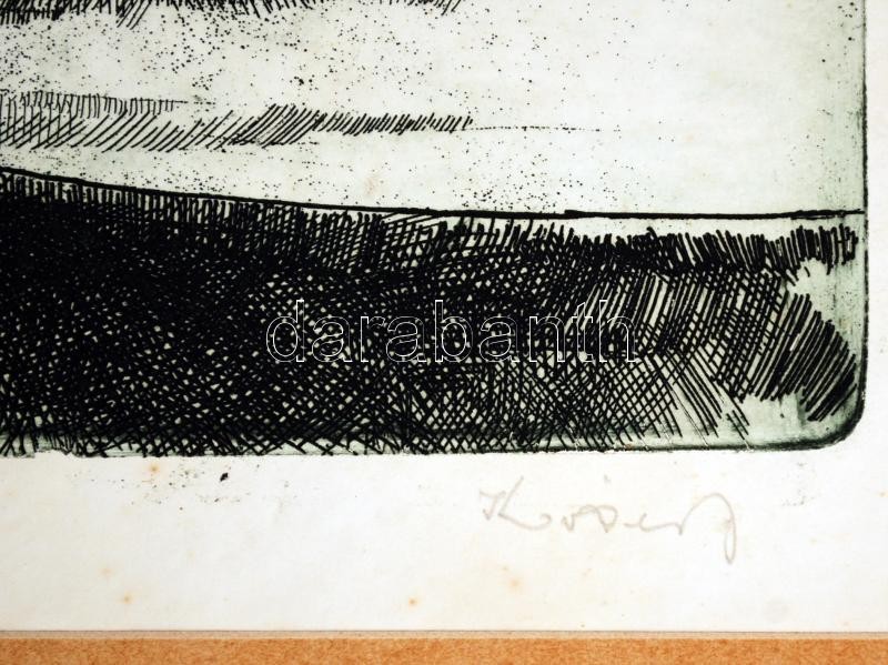 Leírás: Kovács Júlia (1924-2007): Öböl. Rézkarc, papír, jelzett, 24×33 cm
