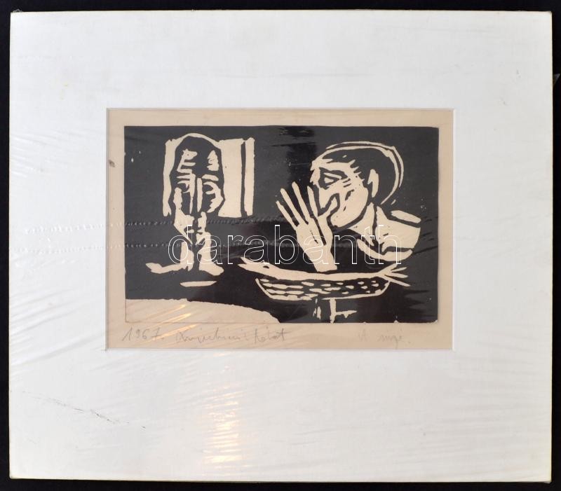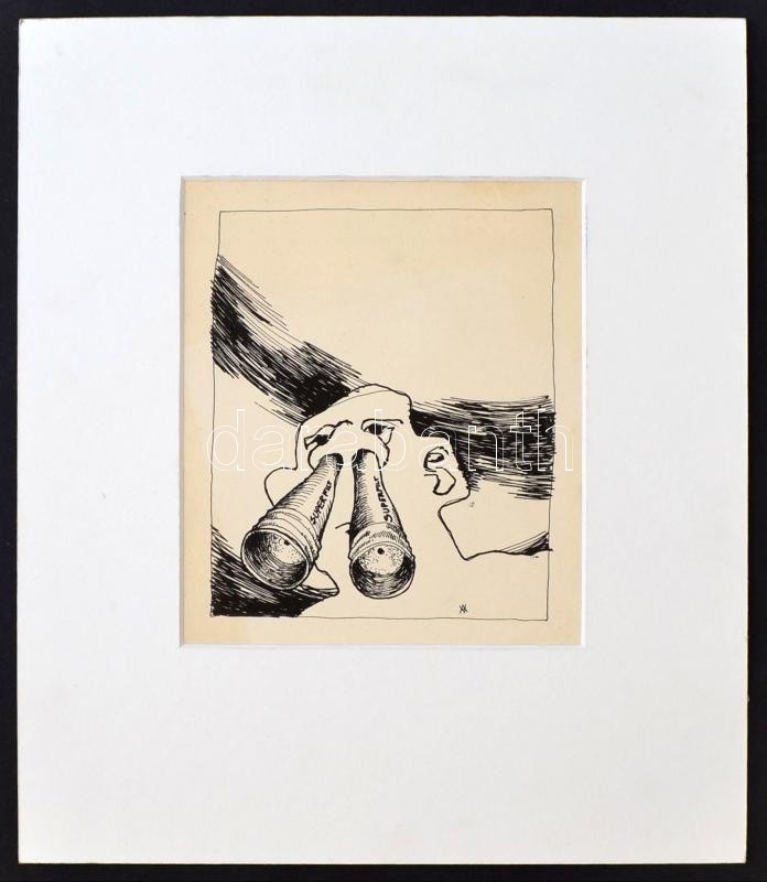 Swierkiewicz Róbert (1942-): 2 db kép: A súgó. Linómetszet, papír, paszpartuban, jelzett, 12x19 cm és Szaglászó. Tus, papír, paszpartuban, jelzett, 17x14 cm
