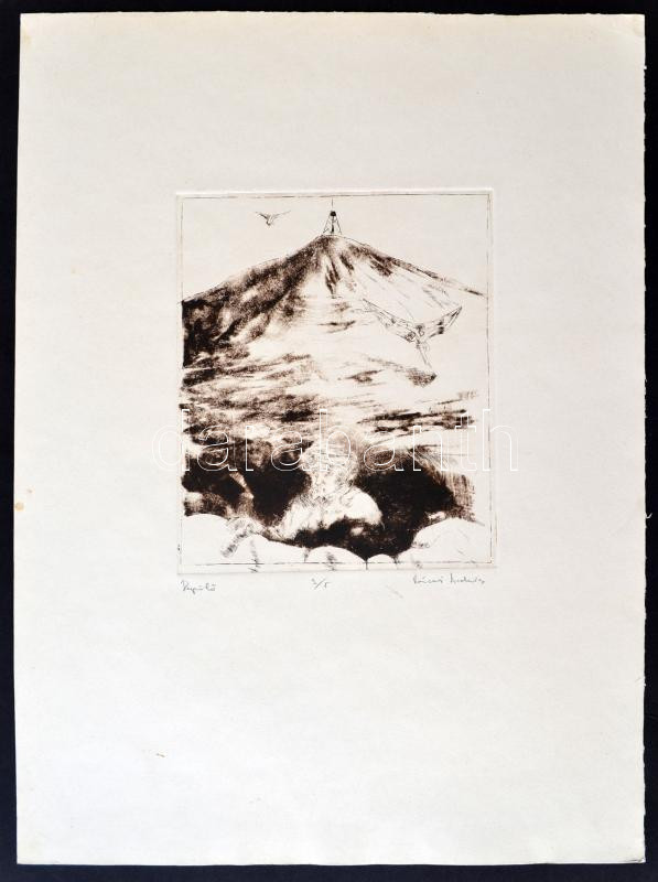 Leírás: Váczi András(1967-): Repülő(3/5). Rézkarc, papír, jelzett, 15x12 cm