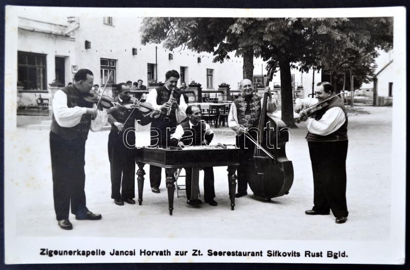 "Horváth Jancsi cigányzenekara" Rust-i étteremben, Burgerlan... https://www.darabanth.com/hu/265-Gyorsarveres/265.0/Festmeny-mutargy-papirregiseg-egyeb/Foto~19/Horvath-Jancsi-ciganyzenekara-Rust-i-etteremben-Burgerland-Franz-Sifkovits-pecsettel-fotol~II1325438