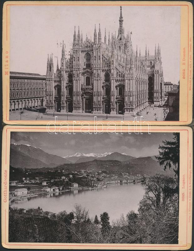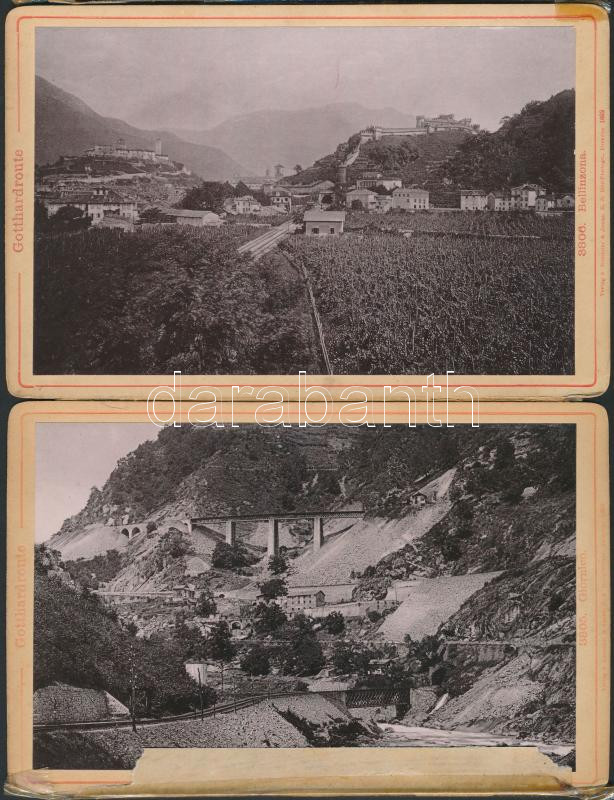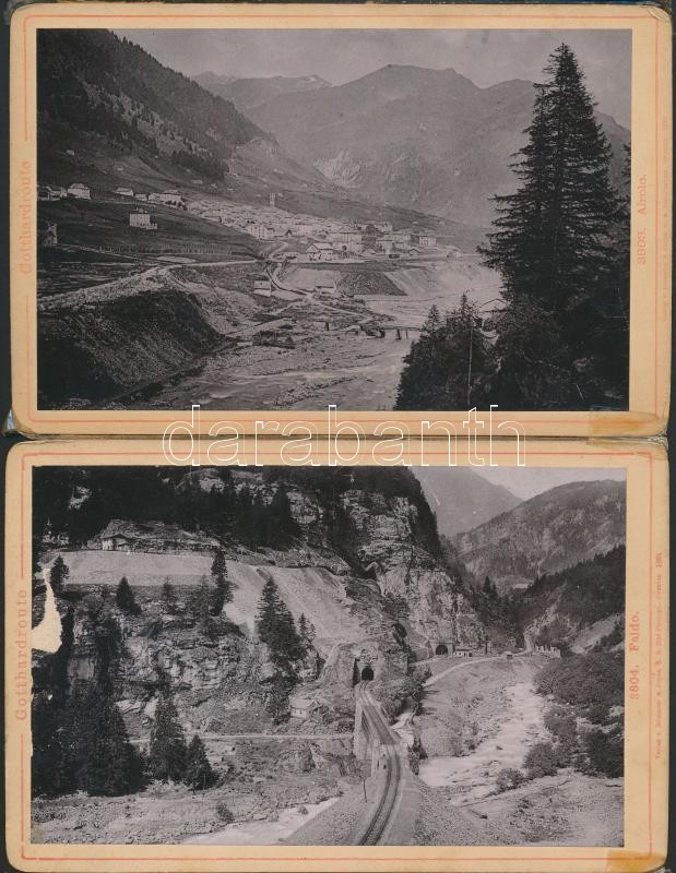 cca 1890 Svájc, Gotthardroute, 6 db keményhátú fotó / cca 1890 Switzerland Gotthardroute 6 photos of Bellinzona, Faido, Airolo, Giornico taped together + 1 Photo of Milano 11x16 cm