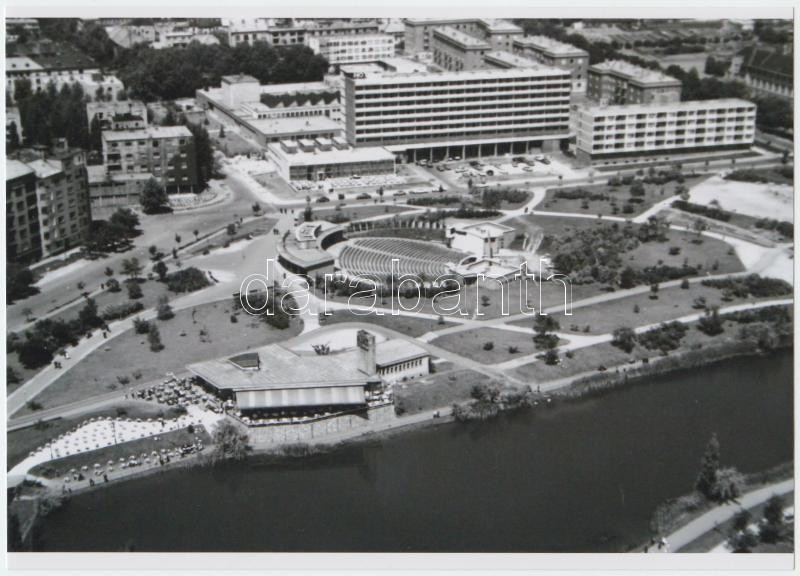 Leírás: cca 1975 Budapest, Légi fotó a Budai Parkszínpadról, Park vendéglőről és a Flamenco Hotelről, modern nagyítás, 13x18 cm