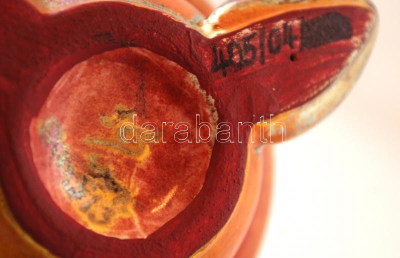 Leírás: Három lábú eozin mázas váza, kerámia, jelzett, hibátlan, 2db, m:14cm