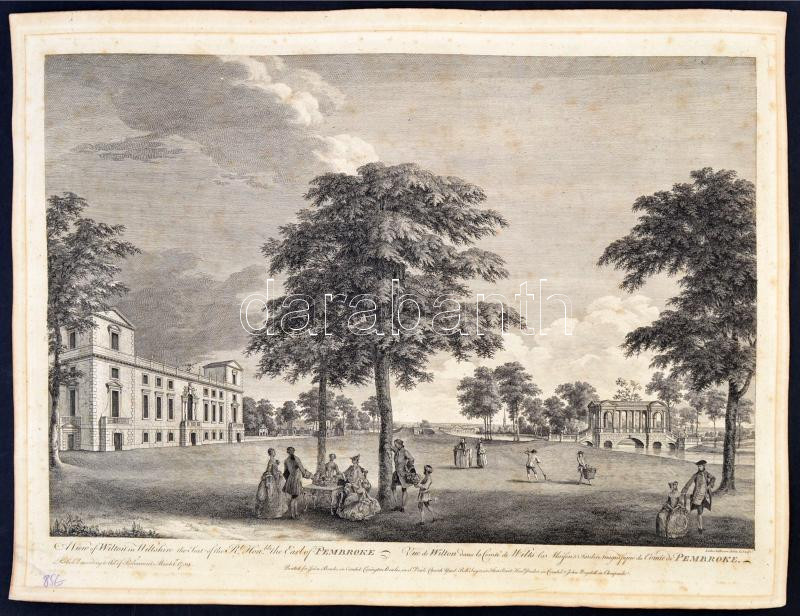 cca 1759 A View of Wilton in Wiltshire, the Seat of the Right Honourable the Earl of Pembroke -- Vue de Wilton dans Comté de Wilts, la maison et jardin magnifique du Comte de Pembroke. A Wilton House, Pembroke earljeinek híres vidéki rezidenciája, rézmetszet, papír, rajzolta és metszette Luke Sullivan (1705-1771), 39×53 cm / cca 1759 A View of Wilton in Wiltshire, the Seat of the Right Honourable the Earl of Pembroke -- Vue de Wilton dans Comté de Wilts, la maison et jardin magnifique du Comte de Pembroke. The famours English country house of the Earls of Pembroke, copper etching, paper, drawn and etched by Luke Sullivan (1705-1771), 39×53 cm