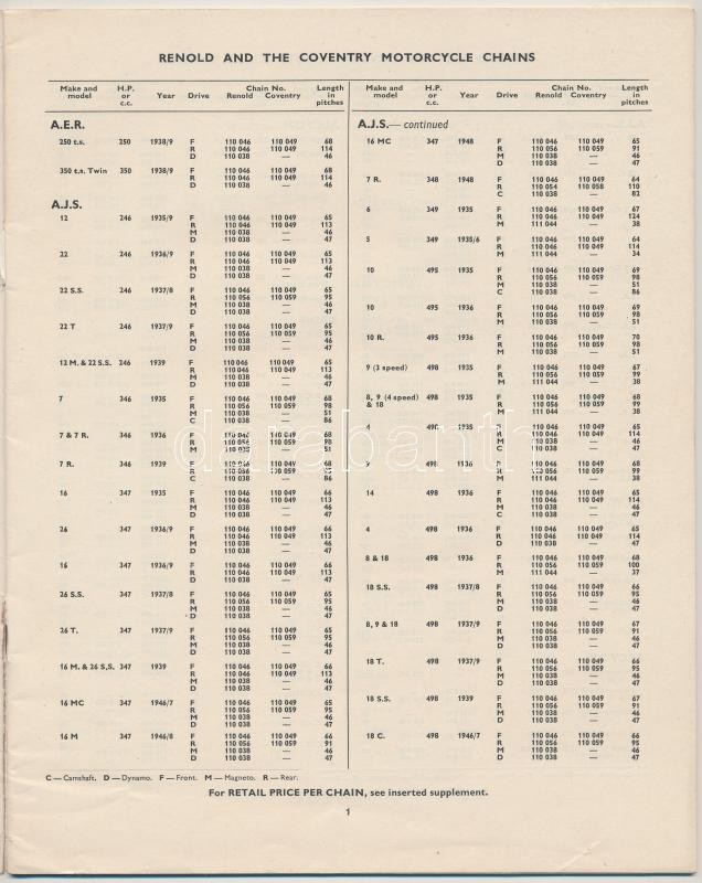 1948 Replacment Chains for Motorcycles (1935-1948), Renold and the cov... https://www.darabanth.com/hu/265-Gyorsarveres/265.0/Festmeny-mutargy-papirregiseg-egyeb/Nyomtatvanyok~200295/1948-Replacment-Chains-for-Motorcycles-1935-1948-Renold-and-the-coventry-pp32-25x20cm~II1327741