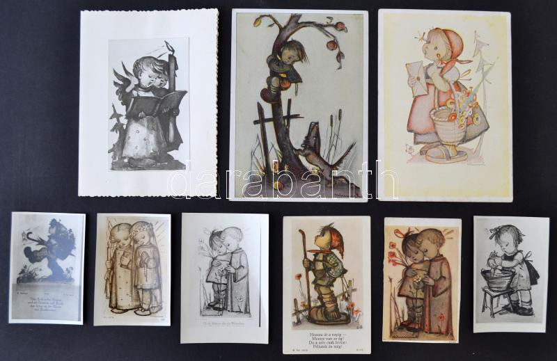 Leírás: cca 1950 9 db különféle Hummel-grafika reprodukció levelezőlapon ill. fényképen, különböző méretben