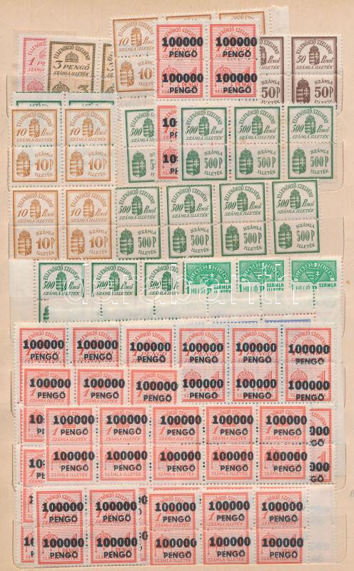 Leírás: 1944-1946 Kb. 100 db számlailleték bélyeg ellenőrző szelvénnyel összefüggésekben