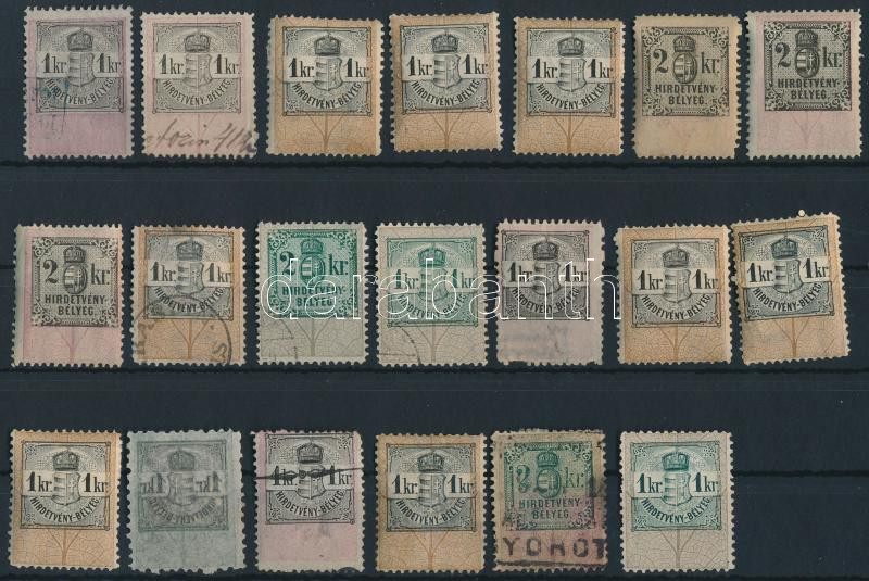 Leírás: 20 db Hirdetménybélyeg közte több használatlan előérvénytelenített stb