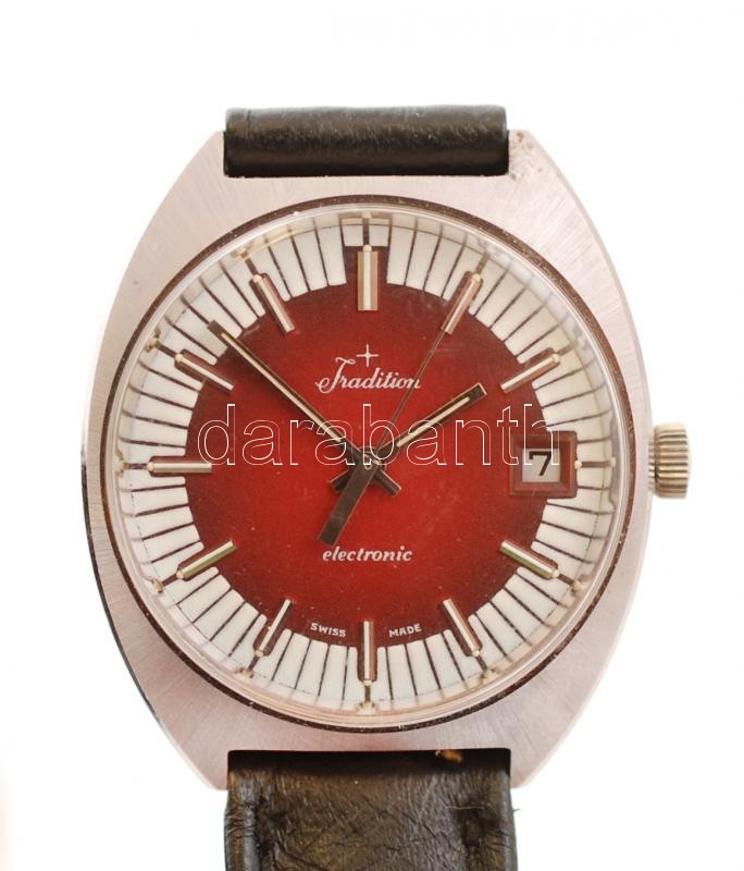 Leírás: Tradition billegőmotoros karóra, szíjjal, dobozban, működik