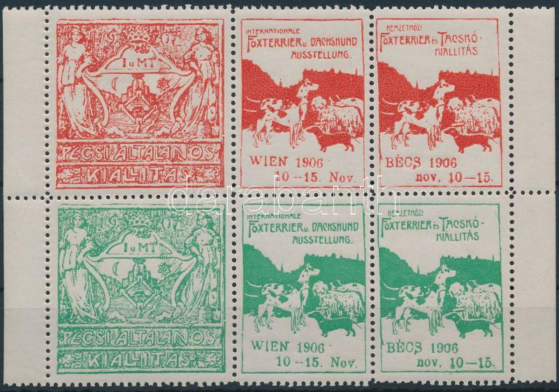 Leírás: 1906 Foxterrier és tacskó kiállítás levélzáró hatostömb