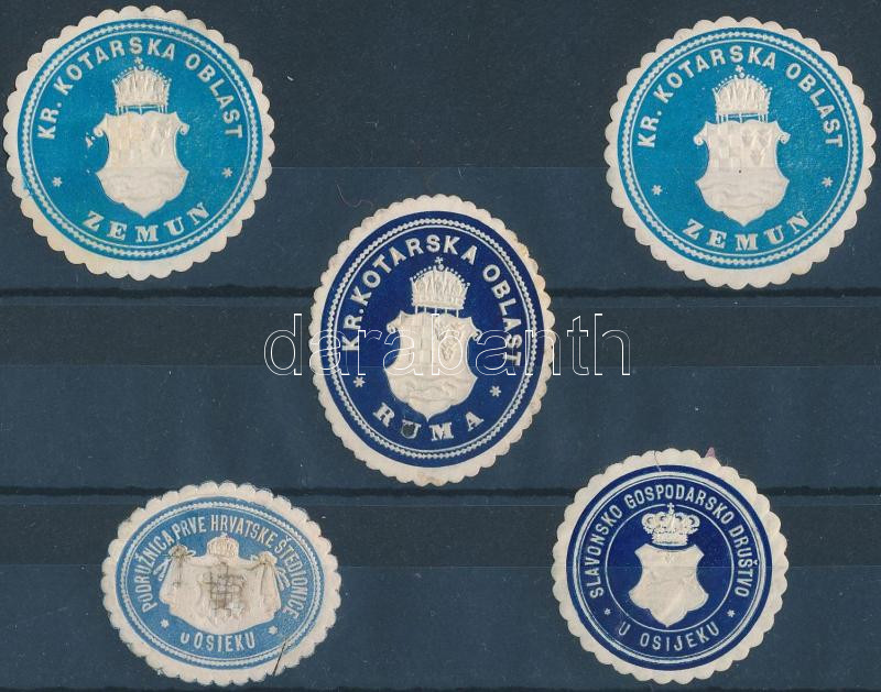 Leírás: Zemun, Ruma, Osijeku 5 db pecsétbélyeg R!