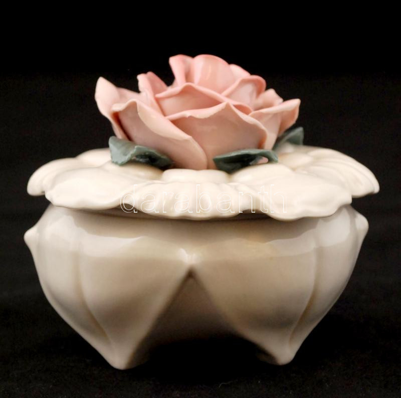 Leírás: Ens rózsás ékszertartó, kézzel festett, jelzett, hibátlan m:7,5 cm