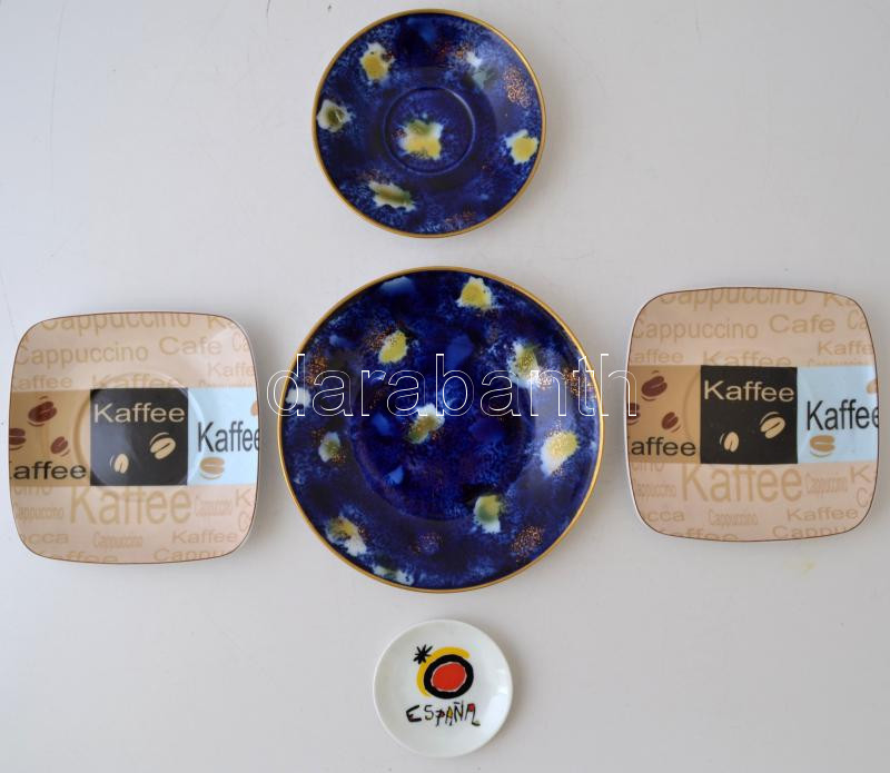 Leírás: Vegyes porcelán tétel: kávéscsészék, csészealjak, kistányér, dísztányér, stb., 8 db