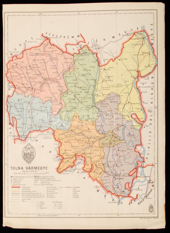 1941 Tolna vármegye térképe, Magyar Királyi Honvéd Térképészeti Intéze... https://www.darabanth.com/hu/265-Gyorsarveres/265.0/Festmeny-mutargy-papirregiseg-egyeb/Terkepek~26/1941-Tolna-varmegye-terkepe-Magyar-Kiralyi-Honved-Terkepeszeti-Intezet-34x24-cm~II1322724
