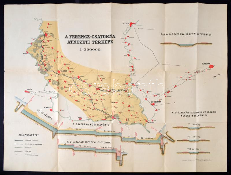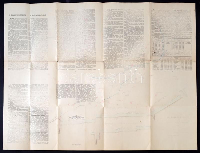 Leírás: cca 1890 A Ferenc csatorna átnézeti térképe. Nagyméretű, hátoldalt többnyelvű leírással 80x70 cm