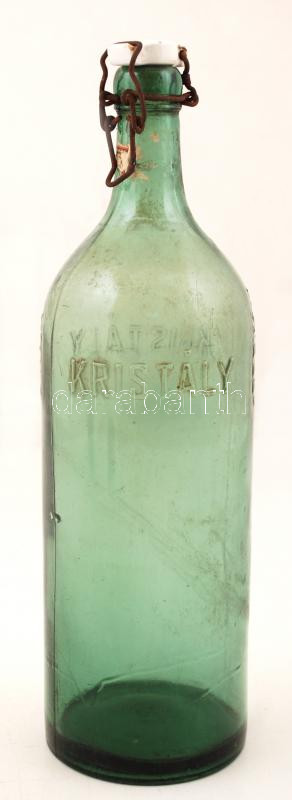 Leírás: "Kristály" címeres csatos zöld üveg, hibátlan, m: 37 cm