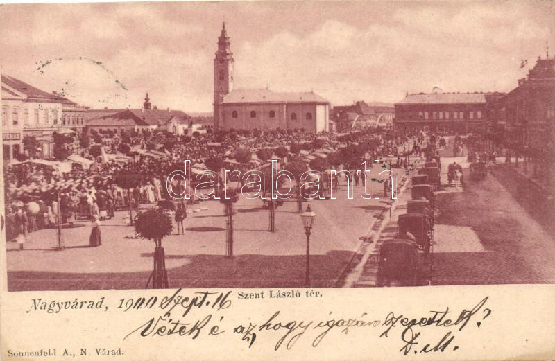 Nagyvárad, Oradea; Szent László tér, piac. Kiadja Sonnenfeld Adolf / m... https://www.darabanth.com/hu/265-Gyorsarveres/265.0/Kepeslapok/Erdely~300027/Nagyvarad-Oradea-Szent-Laszlo-ter-piac-Kiadja-Sonnenfeld-Adolf-market-place~II1328103